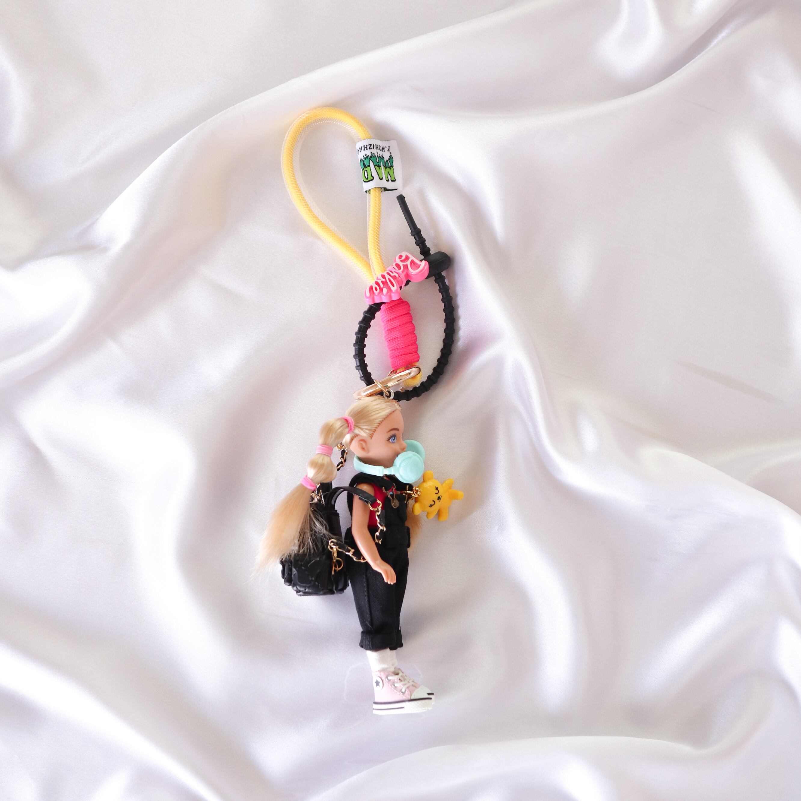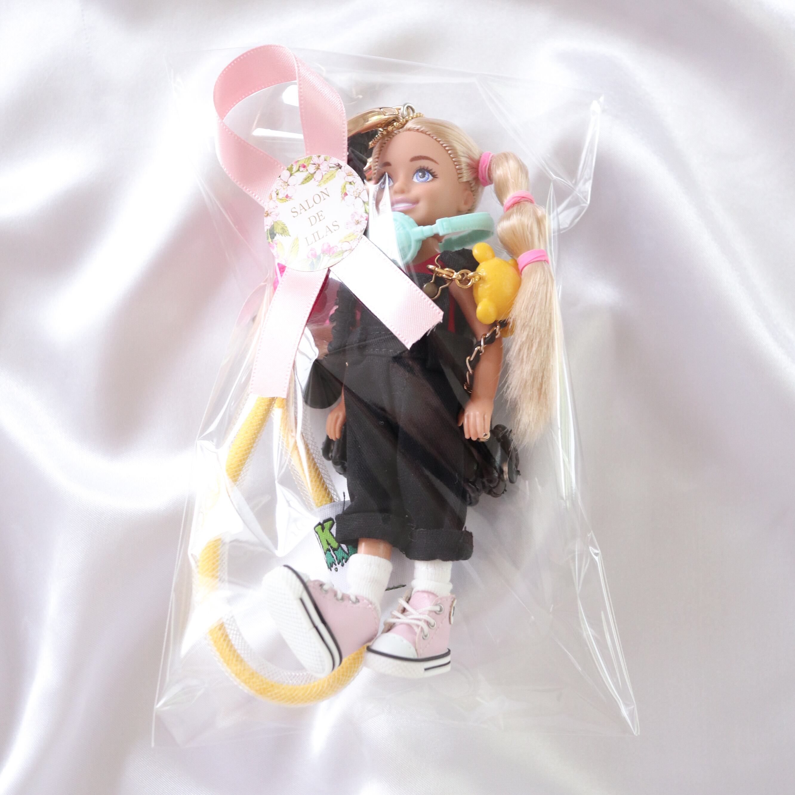このチャームは、唯一無二の黒いオーバーオールを身にまとった可愛いドールが特徴。デザイナーが手作りした世界で1つの特別なデザインは、見る人を惹きつける魅力に満ちています。持ち歩くことで、ちょっとした日常に個性を添え、心を豊かにしてくれます。